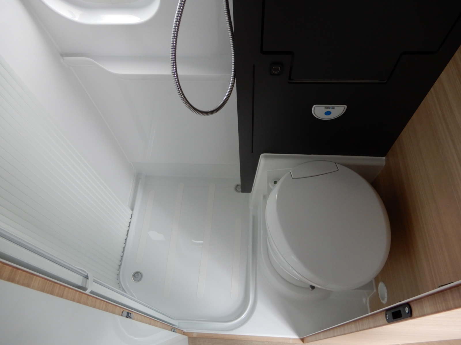 - Kompaktní toaleta s integrovanou sprchou